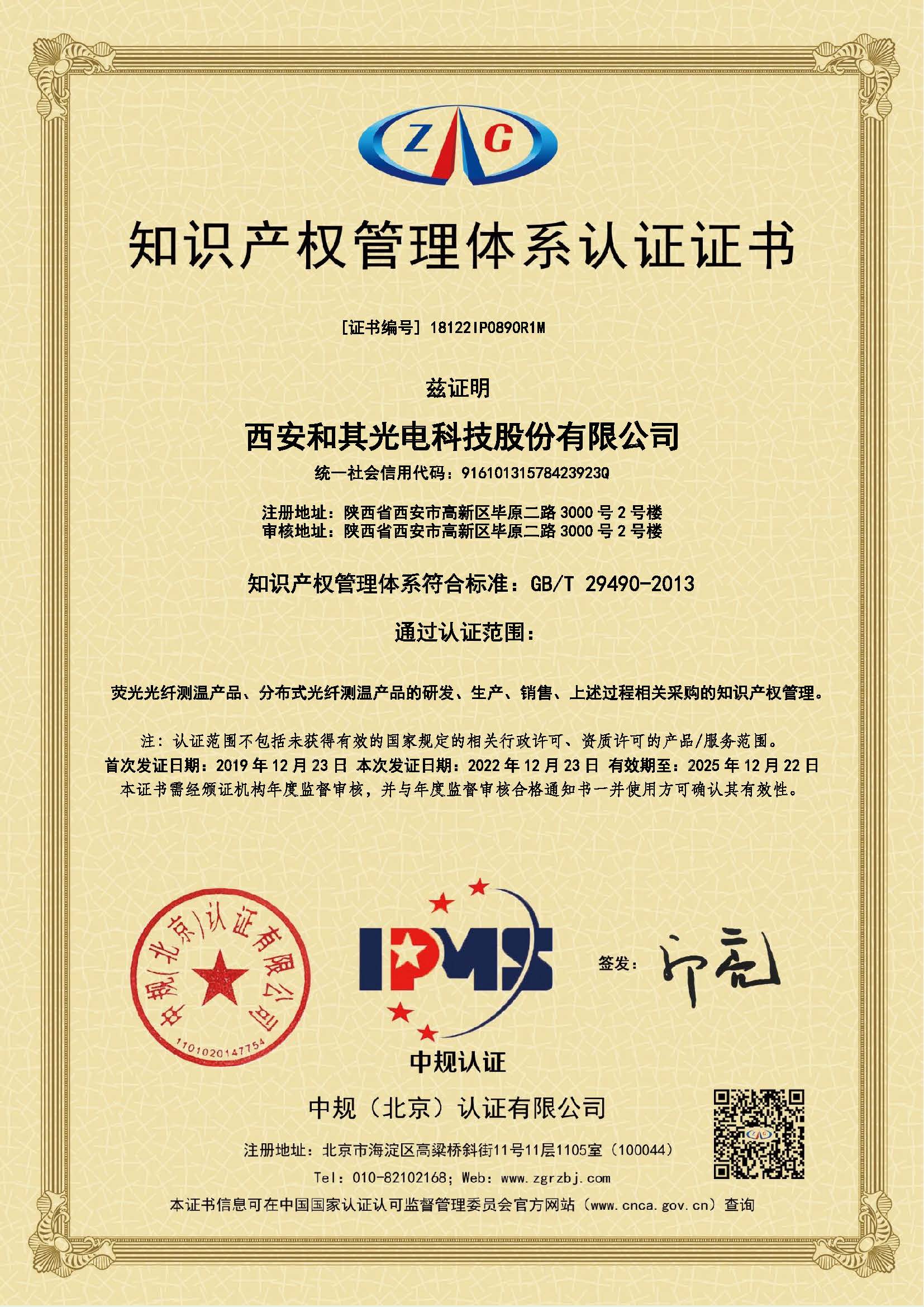 • Intellectual Property Management System Certification